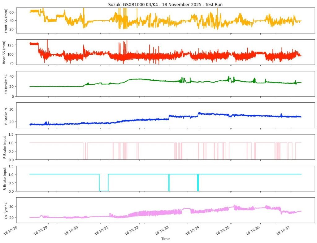 On the 2003 GSX-R1000, you can enter the bike’s diagnostic / dealer mode using the service connector and the dash will display fault codes (or a normal “all good” state). It’s simple but extremely useful: if something is broken, the bike tells you.